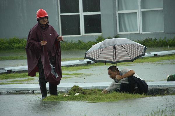 工作人員正在檢修排水系統(tǒng)