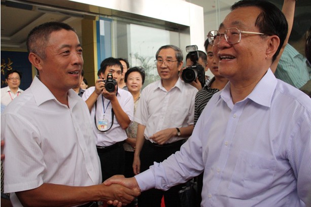 2012年9月6日下午,中共中央政治局委員、全國(guó)政協(xié)副主席王剛在廣西壯族自治區(qū)黨委書記郭聲琨,政府主席馬飚的陪同下蒞臨中國(guó)電子北海產(chǎn)業(yè)園視察指導(dǎo),中電科技公司董事長(zhǎng)謝慶華在園區(qū)展廳迎接了王剛副主席一行。